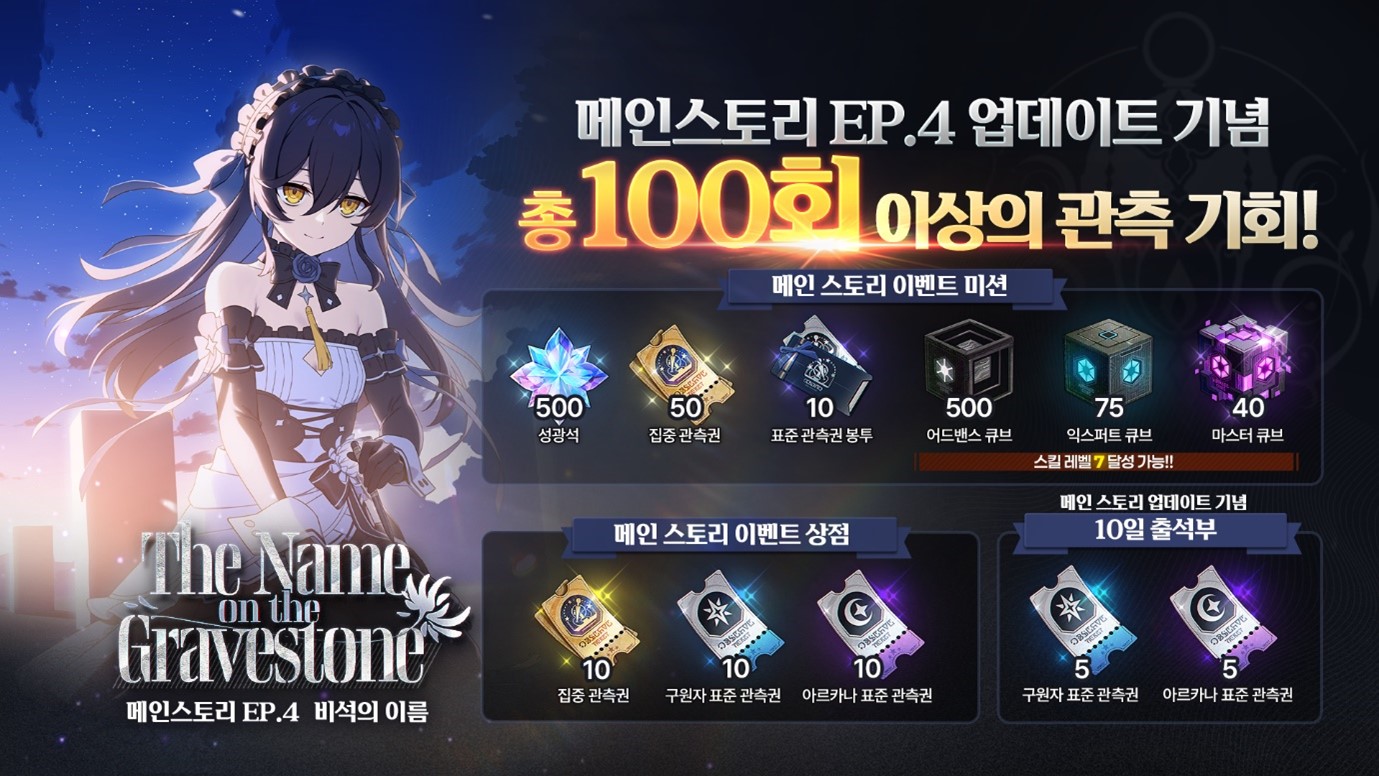또한, 메인스토리 이벤트 상점과 업데이트 기념 출석부 이벤트를 통해 '집중 관측권'과 '표준